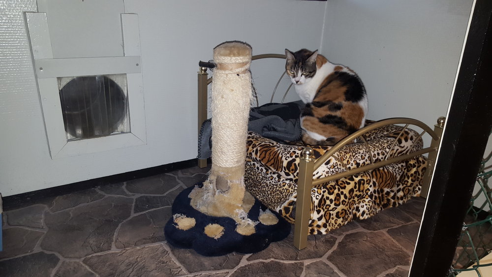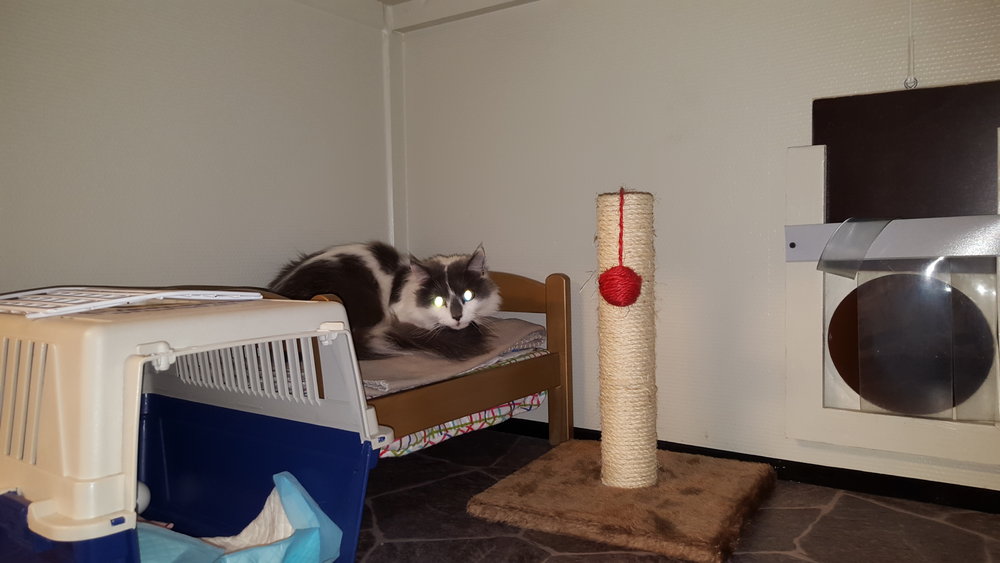 Hos Randaberg Dyrepensjonat har hver katt sin egen innegarde med flotte møbler og pene fasiliteter. Her kan kattene slappe av i fredelige omgivelser.